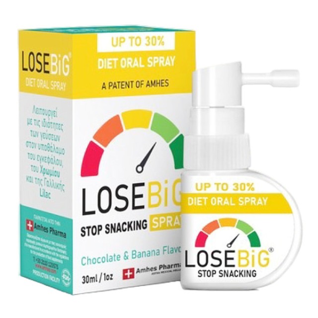 Το LOSEBiG SPRAY, αυτή η παγκόσμια καινοτομία της Amhes Pharma έχει σχεδιαστεί να λειτουργεί και να δημιουργεί το “effect stop snacking” με την δύναμη των γεύσεων, του χρωμίου και του France Lilac, την πηγή της μετφορμίνης. Όλα αυτά τα συστατικά, του LOSEBiG SPRAY, λειτουργούν και συμβάλλουν στην εξισορρόπηση της γλυκόζης, την μείωση της όρεξης, της αίσθησης του κορεσμού αλλά και υπέρ της αντιστρές ικανοποίησης που δημιουργεί το φαγητό. Στην σύνθεσή του, εκτός του Χρωμίου και του France Lilac, περιέχει άρωμα Βανίλιας, μέντας, μπανάνας, πράσινου μήλου και γκρέιπφρουτ, οι οποίες σύμφωνα με έρευνες καταστέλλουν την όρεξη και μειώνουν την επιθυμία για γλυκό αλλά και το τσιμπολόγημα (βουλιμία), εφόσον γίνει χρήση του στην έξαρση των φαινομένων αυτών. Η σύνθεση του LOSEBiG SPRAY περιορίζει την κατανάλωση γλυκών, το snacking και την “λιγούρα”. Λειτουργεί με τις ιδιότητες των γεύσεων στον υποθάλαμο του εγκεφάλου, του Χρωμίου και της Γαλλικής Lilac.