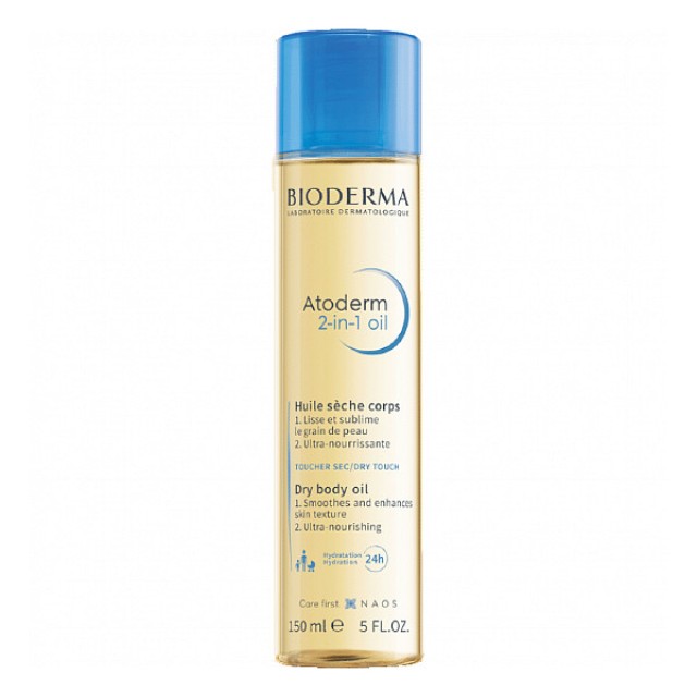 Το ATODERM 2-IN-1 OIL έχει σχεδιαστεί για να καλύψει τις ειδικές ανάγκες του ξηρού δέρματος. Η ρευστή σύνθεσή του με αποτέλεσμα «που αγκαλιάζει το δέρμα» περιέχει έναν κερατολυτικό παράγοντα νέας γενιάς, τον εστέρα μηλικού οξέος. Το έλαιο 2-σε-1 εξαλείφει τα περιττά νεκρά κύτταρα, ενώ παράλληλα σέβεται το φυσιολογικό pH του δέρματος, για βέλτιστη ανοχή του δερματικού οικοσυστήματος. Τα βιομιμητικά λιπίδια του (κεραμίδια, σκουαλένιο και φυτικά έλαια που περιέχουν λιπαρά οξέα) αναγνωρίζονται φυσικά από το δέρμα και συμβάλλουν στην ενίσχυση του υδρολιπιδικού φιλμ και του διακυτταρικού λιπιδικού τσιμέντου, φυσικών συμμάχων κατά της αφυδάτωσης του δέρματος. Προσφέροντας εντατική λείανση και βαθιά θρέψη, το δέρμα ανακτά από μόνο του τη φυσική, διαρκή ενυδάτωσή του.