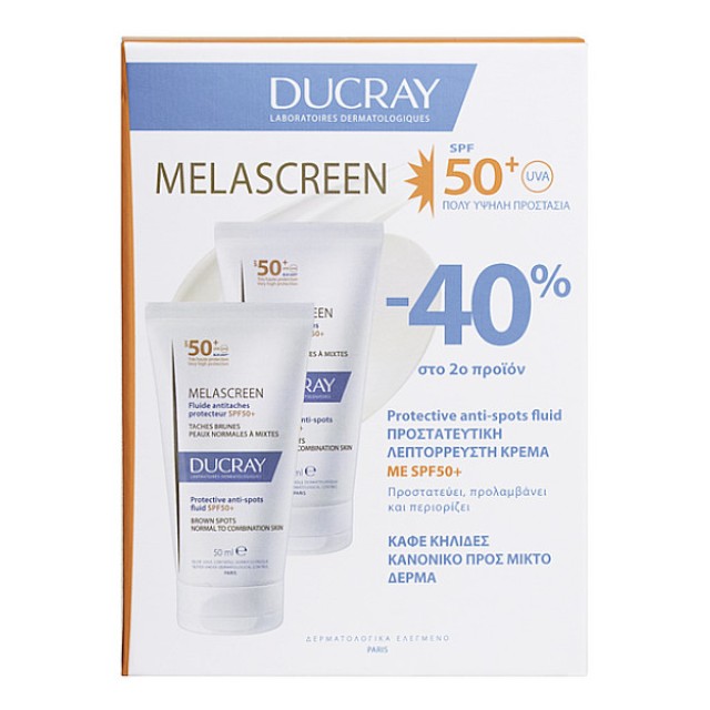 Ducray Melascreen Protective Anti-Spots Fluid SPF50 Normal to Combination Skin 2x50ml