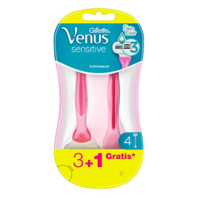 Οι λεπίδες της Venus Sensitive είναι σχεδιασμένες με γνώμονα το γυναικείο σώμα και φτιαγμένες για γυναίκες με ευαίσθητη επιδερμίδα. Διαθέτουν τρεις λεπίδες που αγκαλιάζουν τις καμπύλες του σώματος και κινούμενη στρογγυλεμένη κεφαλή που βοηθά στην προστασία της επιδερμίδας από τους ερεθισμούς. Σχεδιασμένες με μαλακή λαβή και τρεις λεπίδες, για βαθύ και άνετο ξύρισμα. Τα ξυραφάκια μιας χρήσης Venus Sensitive διαθέτουν λιπαντική ταινία SkinElixir για καλύτερη ολίσθηση.