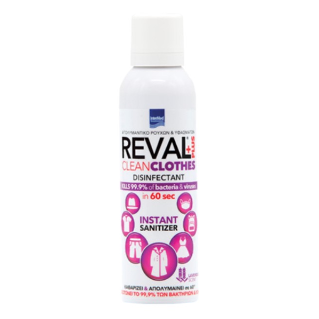 Το Reval® Plus Clean Clothes καθαρίζει, απολυμαίνει τα ρούχα και τα υφάσματα σε 60’’, σκοτώνοντας το 99,9% των βακτηριών και των ιών.