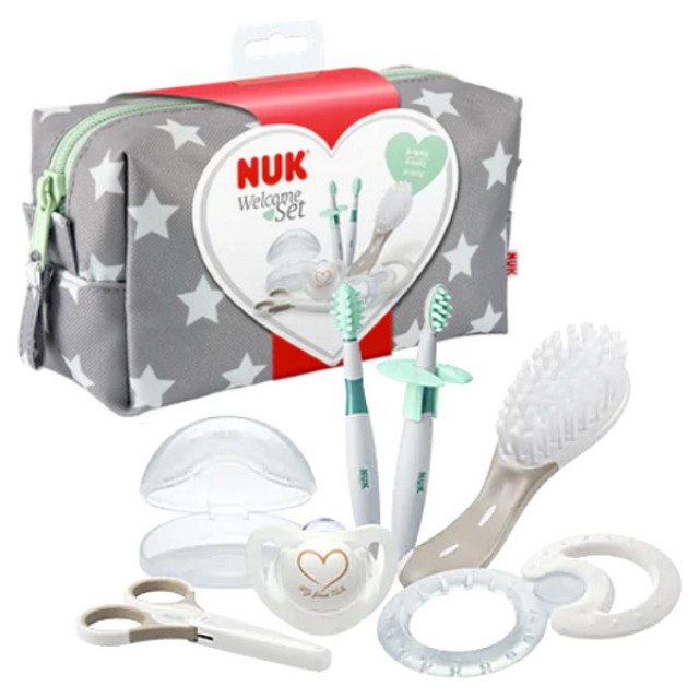 NUK δημιούργησε το σετ «Welcome» που περιλαμβάνει 7 πρακτικά προϊόντα για την καθημερινή φροντίδα του μωρού σε ένα όμορφο τσαντάκι. Το σετ μπορεί επίσης να αποτελέσει εξαιρετικό δώρο από συγγενείς και φίλους, εάν η μαμά και ο μπαμπάς δεν το έχουν ήδη σκεφτεί.