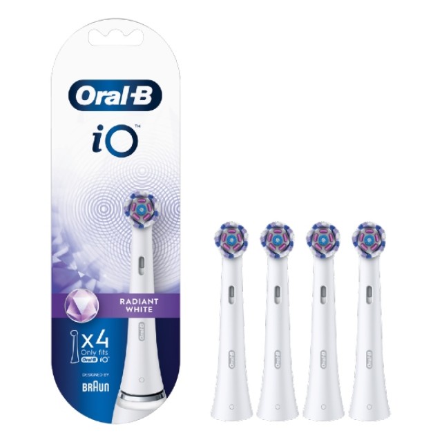 • Η Oral-B iO Radiant White συνδυάζει τις ίνες με τέλεια γωνία και τα εξαρτήματα γυαλίσματος για προηγμένο καθαρισμό και πιο λευκά δόντια