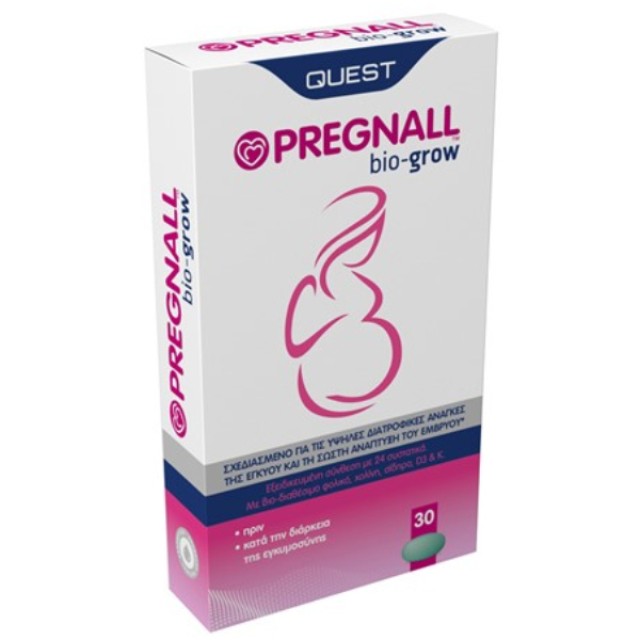 Το συμπλήρωμα διατροφής Pregnall bio-grow της Quest παρέχει όλες τις απαραίτητες βιταμίνες και μέταλλα που χρειάζεται η γυναίκα πριν τη σύλληψη και καθ’ όλη τη διάρκεια της εγκυμοσύνης. Η σωστή, καθημερινή λήψη θρεπτικών συστατικών διασφαλίζει την υγεία της μητέρας και τη σωστή ανάπτυξη του εμβρύου.